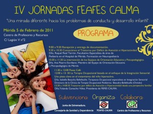 Os enviamos la información relativa a la Jornada de FEAFES CALMA «Una mirada diferente hacia los problemas de conducta y desarrollo infantil» que se celebrará el día 5 de Febrero en el Centro de Profesores y Recursos de Mérida.